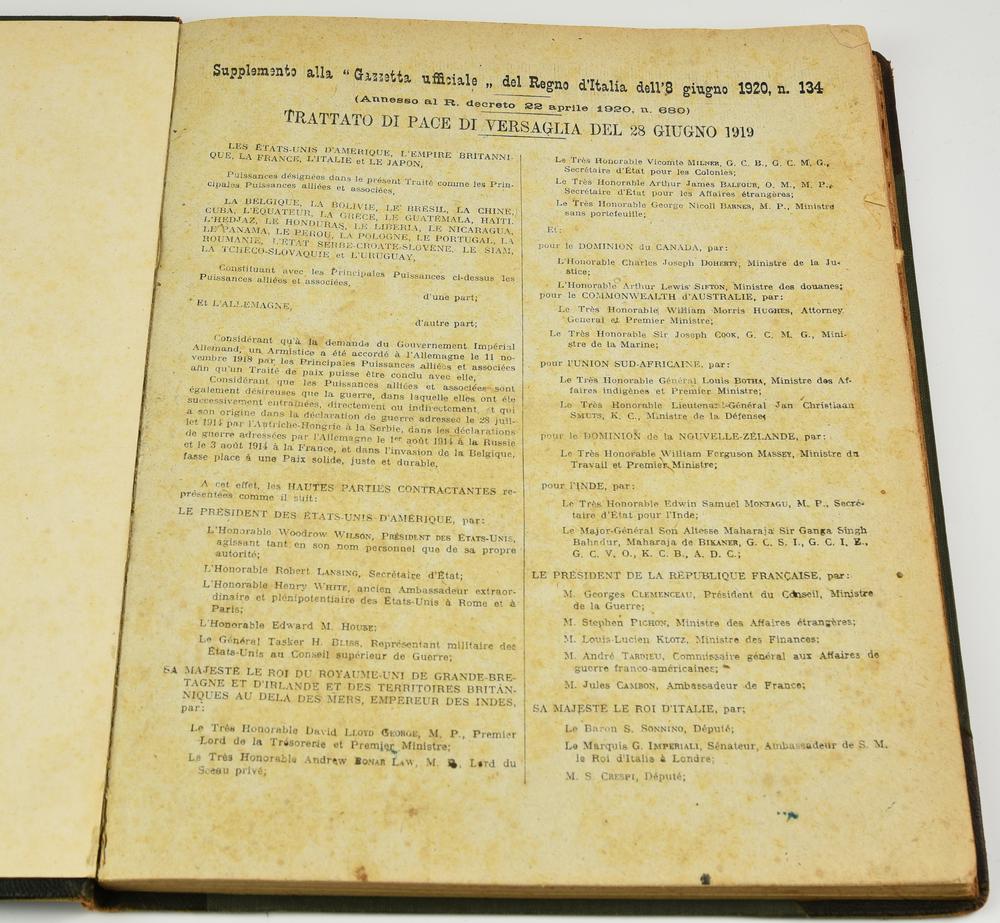 Lot 134 | Guerra Mondiale, testo dei trattati di pace di Versailles e Saint Germain...