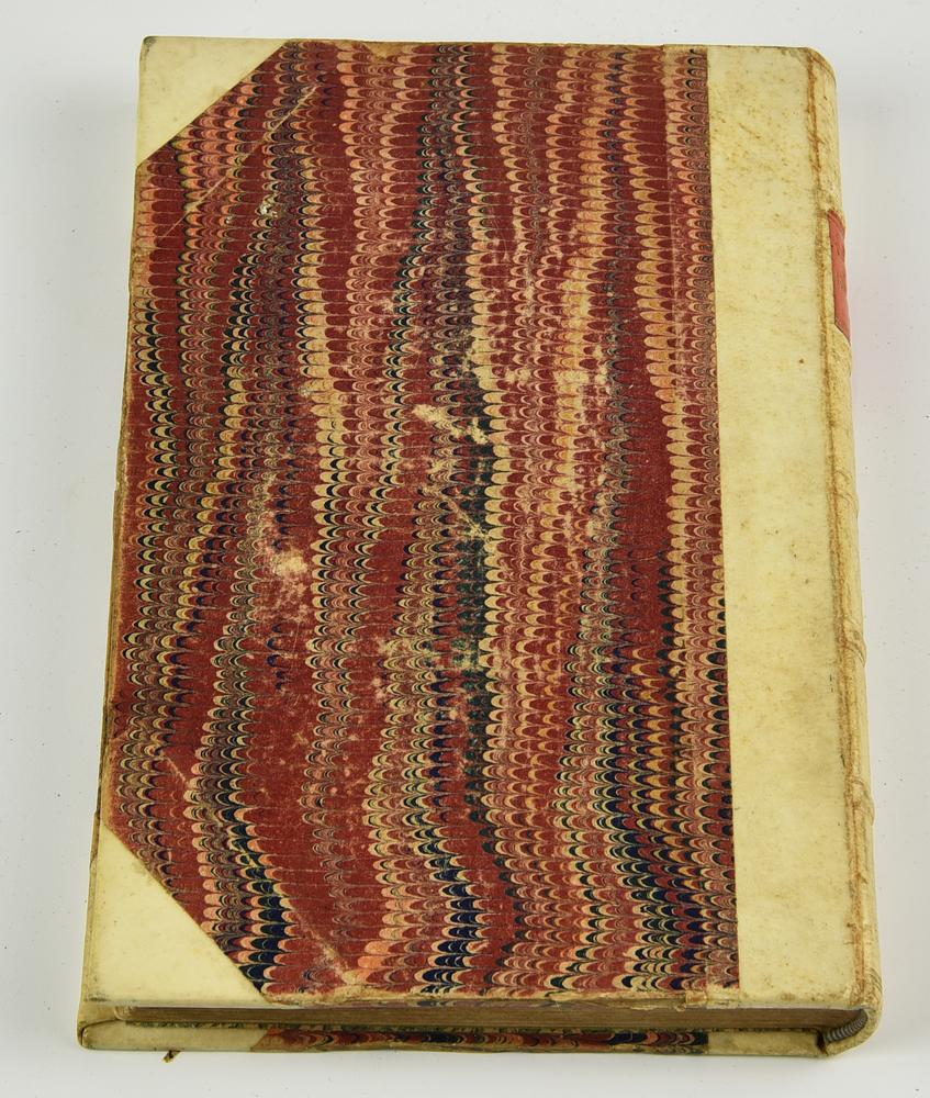 Rilegato in pelle con 5 nervature e targhetta con il titolo