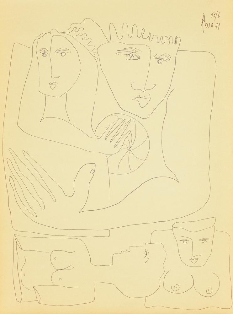 Russo BUSTI CON PALLA pennarello su carta, cm 40x30 firma e data eseguito nel...