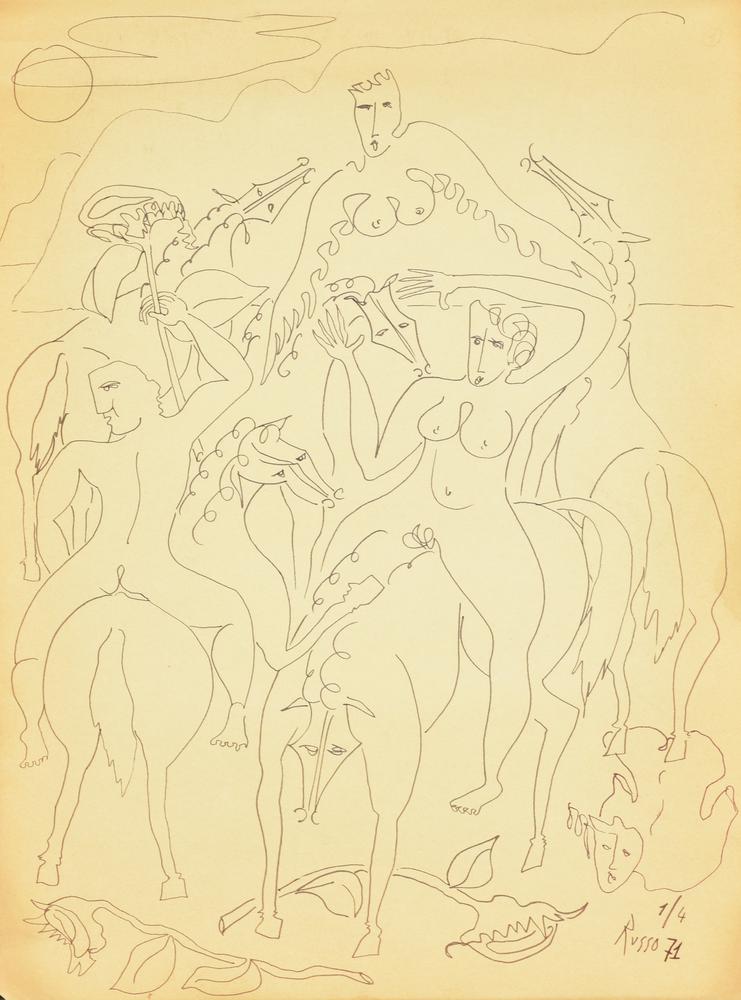 Russo CAVALLERIA pennarello su carta, cm 40x30 firma e data eseguito nel 1971