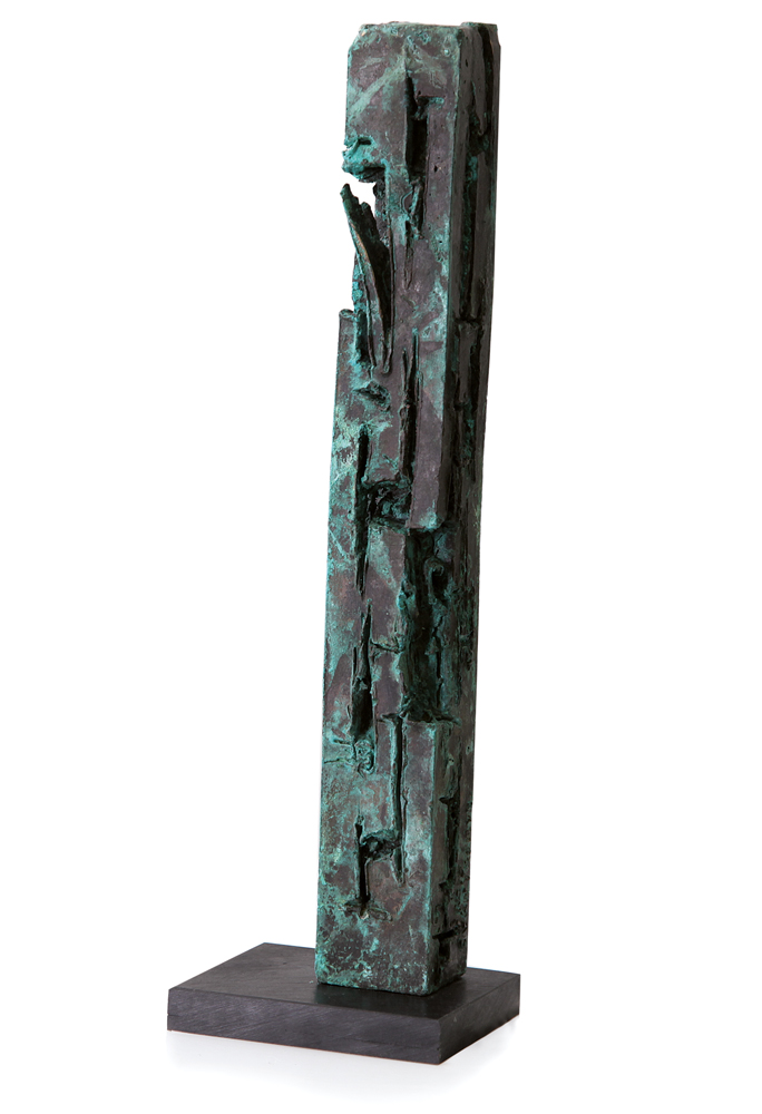 scultura in bronzo cm. 31x4x4, poggiante su base in plexiglass, firma e anno in basso su un lato, dichiarazione d'autenticità dell'artista su foto, 2 fotografie autenticate dall'artista rappresentanti il progetto "Sole" e "Raggi di sole" e la posizione delle 118 sculture nell'installazione.