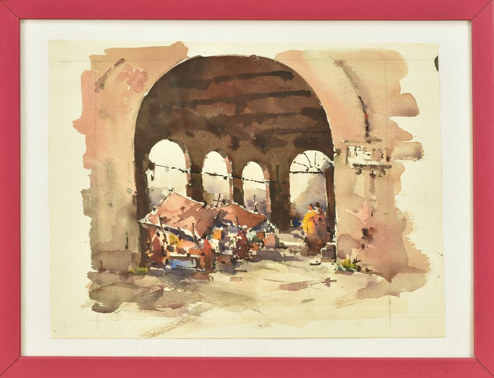 Anonimo INTERNO CON ARCATE acquarello su carta, cm 25x33,5
