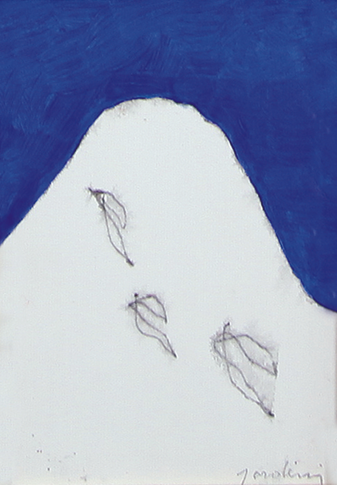 tecnica mista su tela cm. 18x13, firma in basso a destra, firma e anno al retro, dichiarazione d'autenticità dell'artista su foto.
