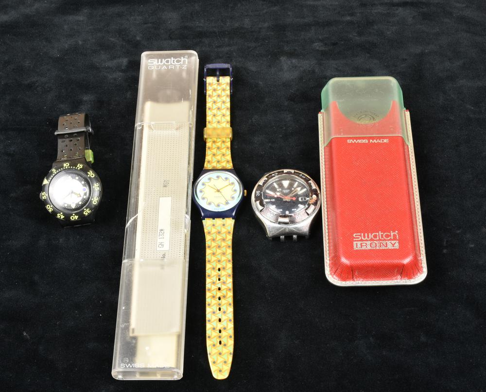 LOTTO DI TRE OROLOGI SWATCH degli anni '90 due con custodia originale; si...