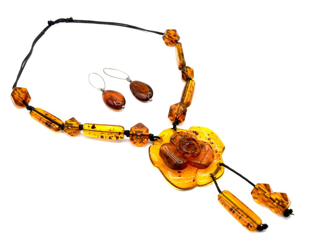 Lot 31 | PARURE COMPOSTA DA COLLANA IN AMBRA CON GRANDE PENDENTE IN AMBRA MODELLATO A...