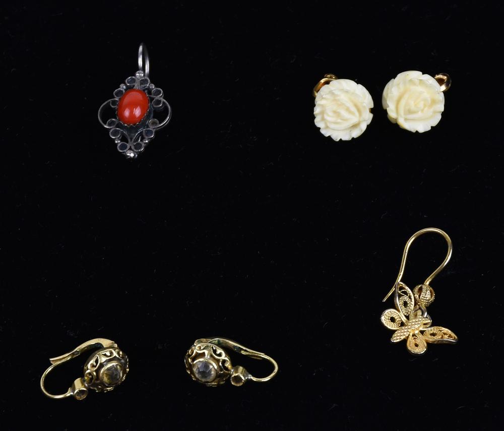 LOTTO DI ORECCHINI composto da un paio di roselline in avoriolina, un paio in...