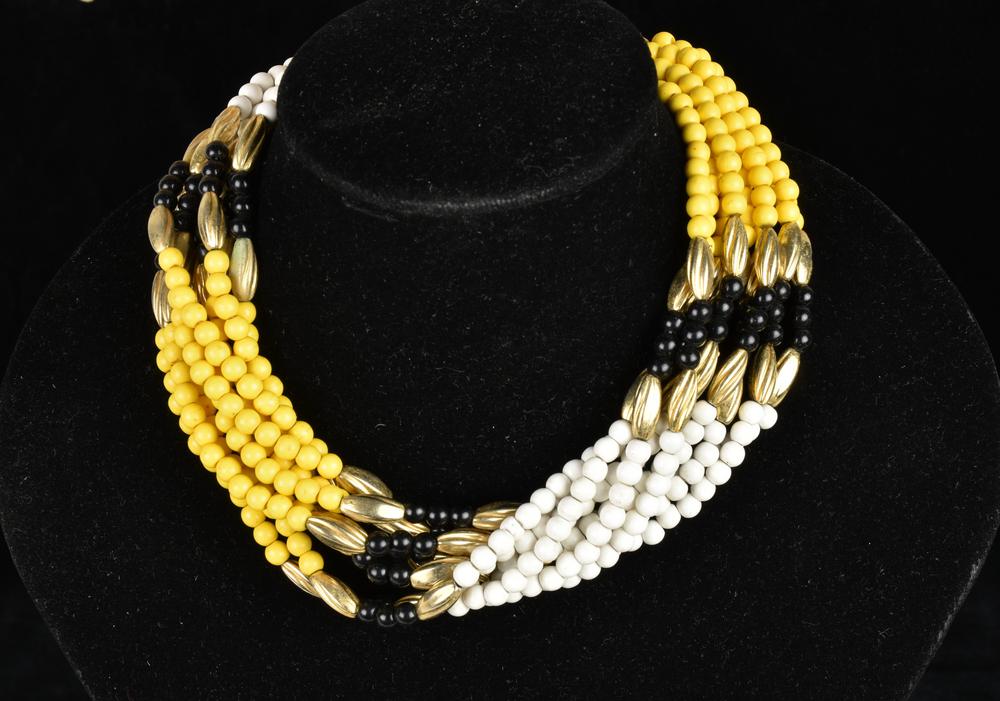 GIROCOLLO CON INSERTI IN METALLO DORATO degli anni Settanta a nove fili...