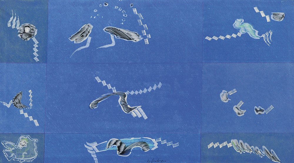 DANGELO SERGIO Milano 1932Acquario, 1966tecnica mista su tela cm. 45x80,...