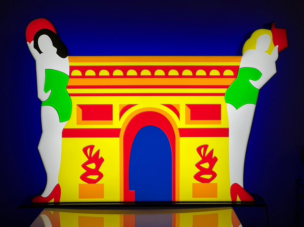 Scultura luminosa da appoggio in perspex e neon, cm 50x70x11