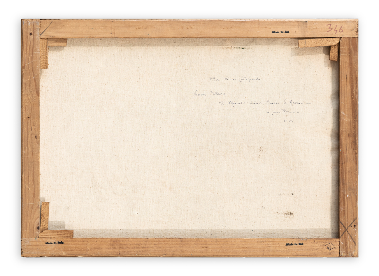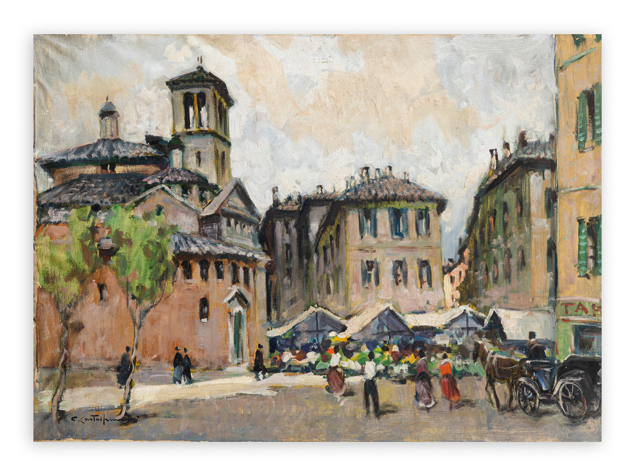 CIRANO CASTELFRANCHI (1912-1973) - Vecchia Milano. Il Mercato vicino Chiesa S. Nazaro in Corso Roma, 1955