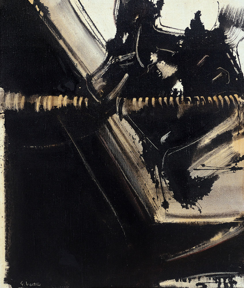 olio su tela cm. 100x81, firma in basso a sinistra, titolo, firma e anno al retro, opera registrata presso l'Archivio Gianni Bertini a cura della Galleria d'Arte Frittelli come da dichiarazione su foto con certificato allegato, dichiarazione d'autenticità dell'artista su foto.