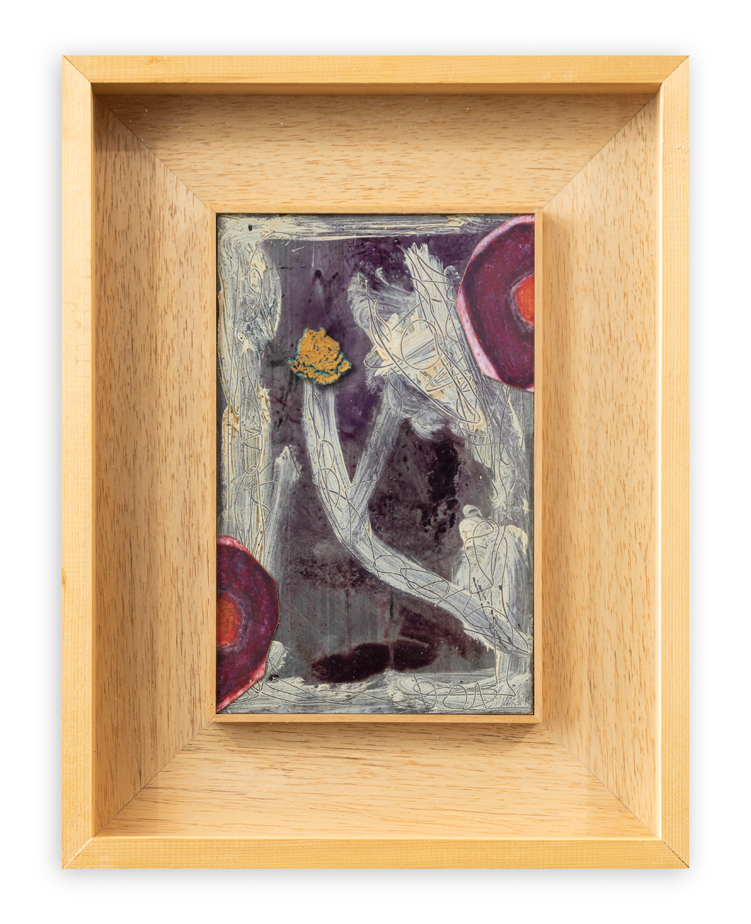 Timbro dell'Artista con caratteristiche teniche dell'opera al retro della tavola protettiva