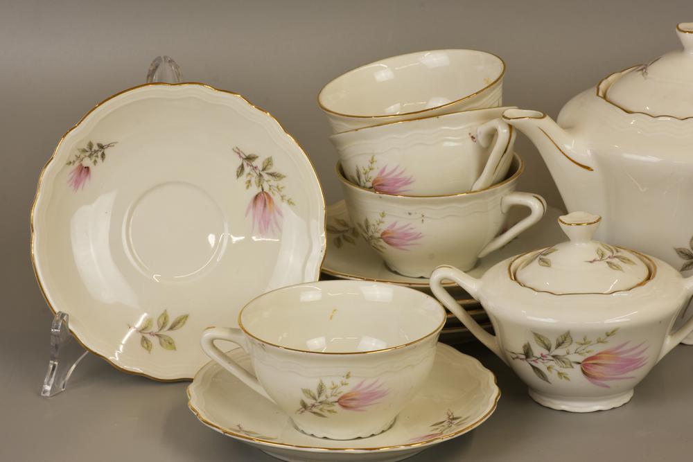 Lot 203 | SERVIZIO DA THE DURKEN in porcellana decorata a motivi floreali, composto da...