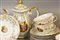 SERVIZIO DA THE in porcellana decorata a motivi vegetali dorati e scene...
