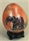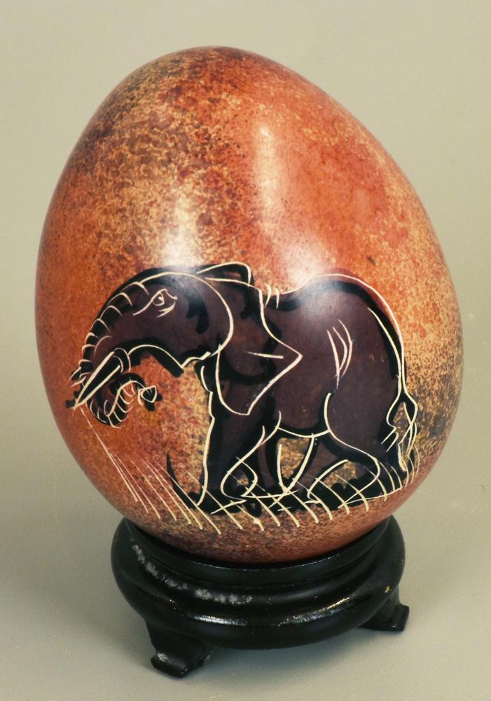 UOVO IN PIETRA decorato con scene della cultura africana, con base in legno...