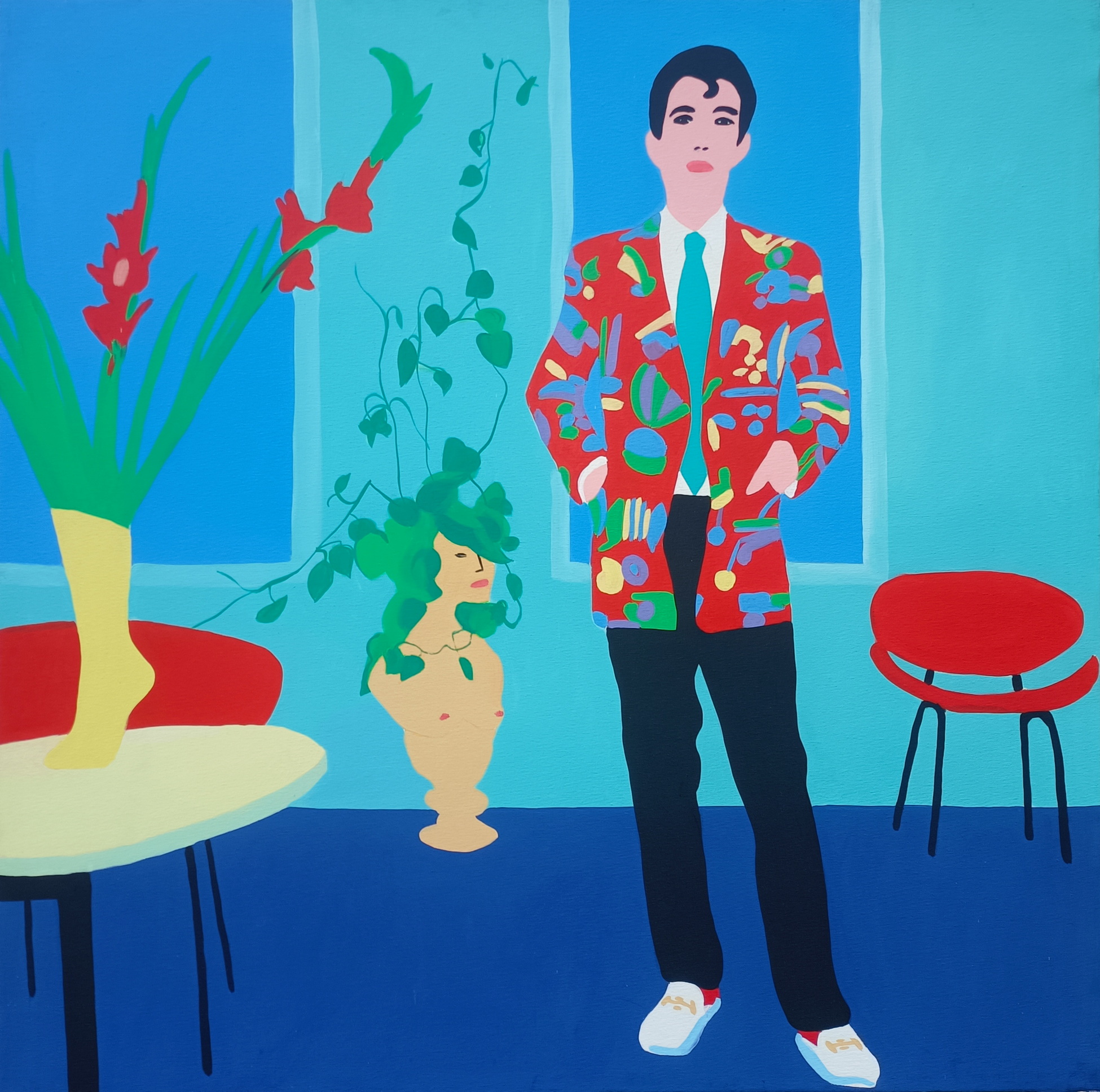 Acrilico su tela in teca di plexiglass