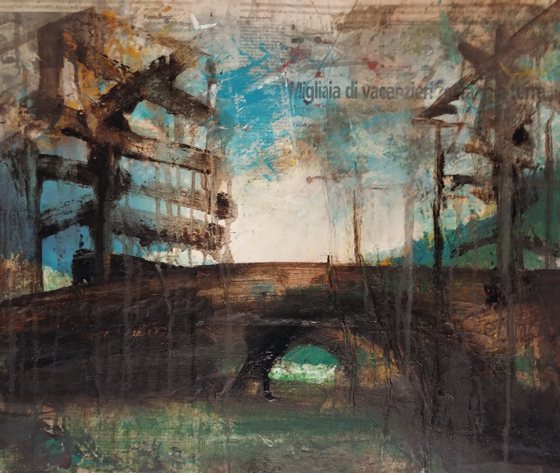 CERRI GIOVANNI Milano (Mi) 1969 Paesaggio 2006 Collage su tela 46,00x54,00...