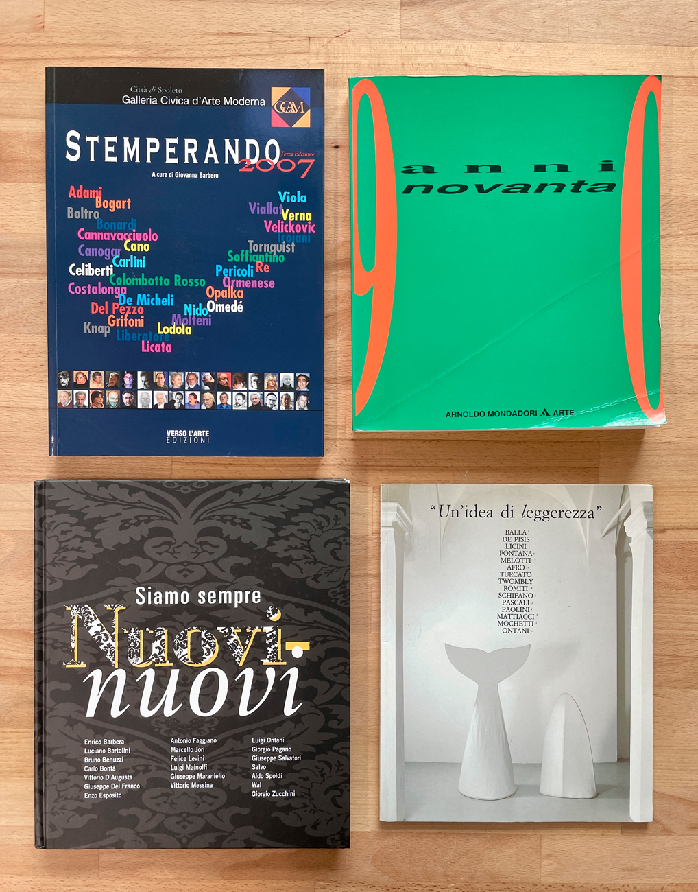 Catalogo riccamente illustrato, a cura di Vittorio Rubio e Laura Cherubini, edito in occasione dell'esposizione collettiva tenutasi presso Galleria d'Arte Niccoli, Parma, 1991, dedicata ad importanti maestri del dopoguerra come: Balla, De Pisis, Fontana, Melotti, Afro, Schifano, ecc...