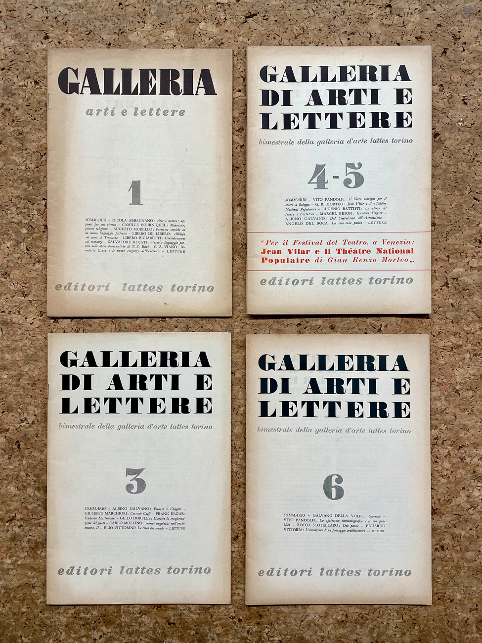 Lotto unico di 4 numeri riccamente illustrati, editi nel 1953, della rivista 'Galleria di arti e lettere - bimestrale della galleria Lattes, Torino'