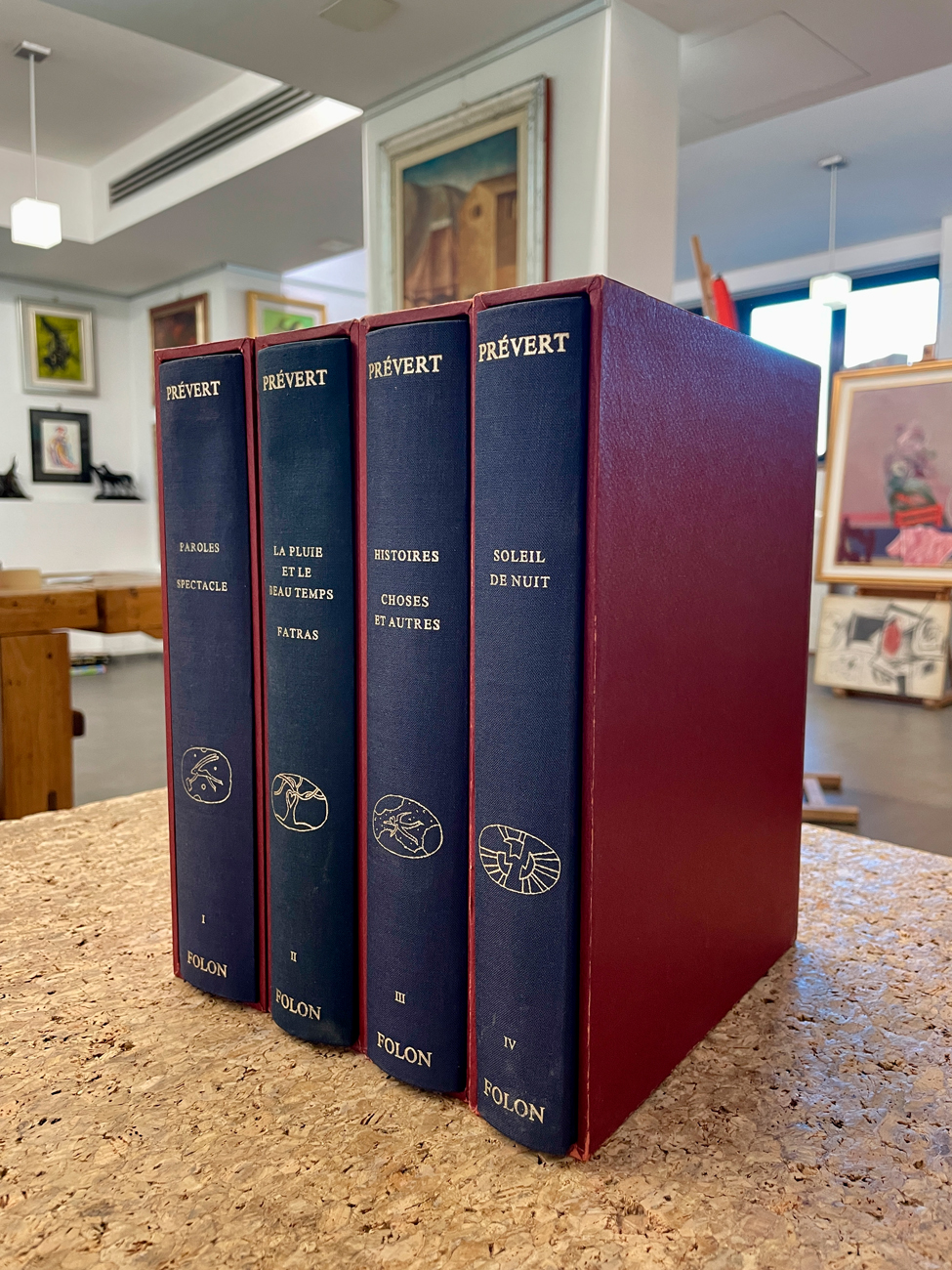 Lotto unico di 4 volumi recanti testi di Jacques Prévert interamente illustrati da riproduzioni di acquerelli di Jean-Michel Folon: