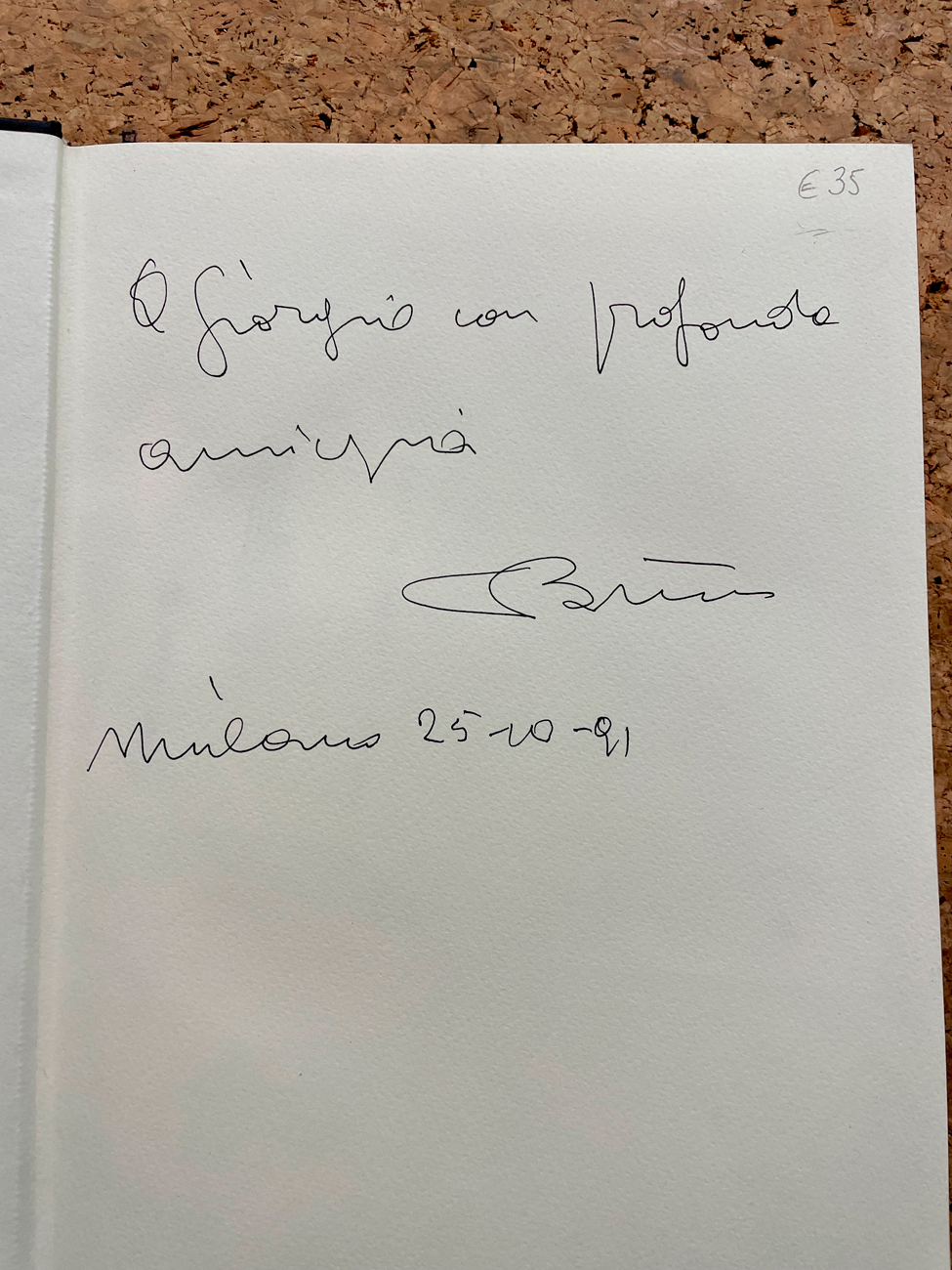Reca firma e dedica all'interno