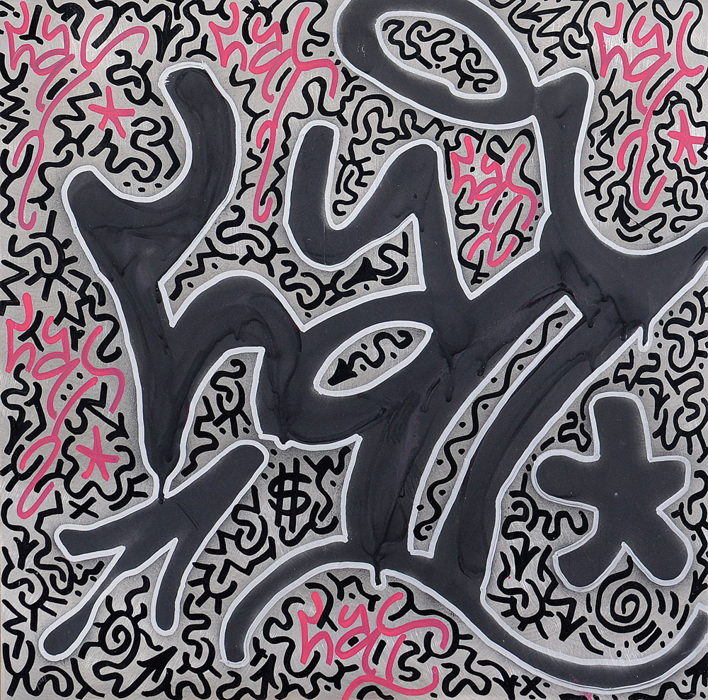 spray e pennarello su alluminio cm. 51x51, firma sul fronte, certificato di autenticità della Follin Gallery (New York) allegato, opera priva di cornice.