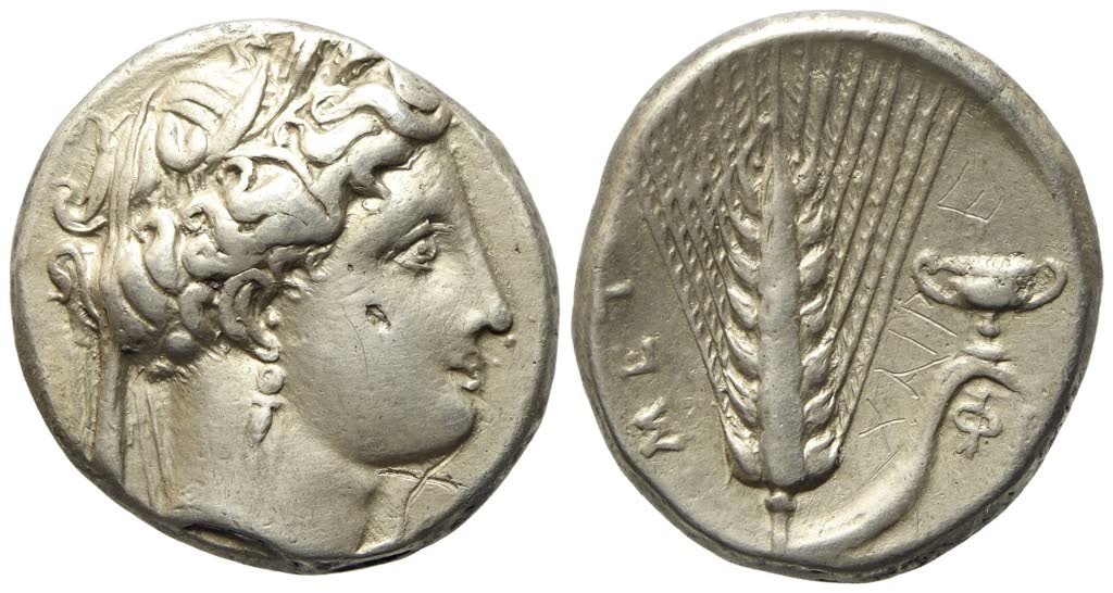 Lucania, Metapontion (c. 340-330 BC), Nomos; AR (7,22 g; 20 mm)