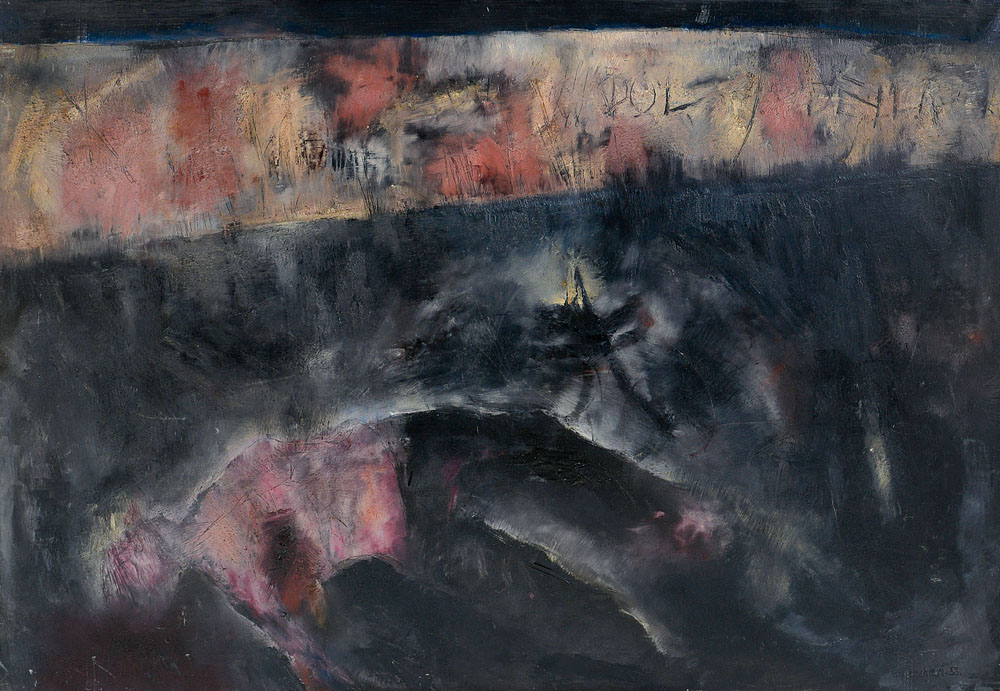 olio su tela cm. 100x140, firma e anno in basso a destra, titolo, anno, timbri della Galleria Bergamini (MI) ed etichetta della Galleria Annunciata (MI) al retro.