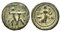 Two men standing side by side, fighting with a double-axe and a sickle; Rv. ET - EN, nymph advancing r.; in front, coiled snake; behind, jug. SNG Copenhagen 148; Von Aulock, Pisidien II, 76; SNG France 1533. Green patina with earthen highlights. Good very fine.