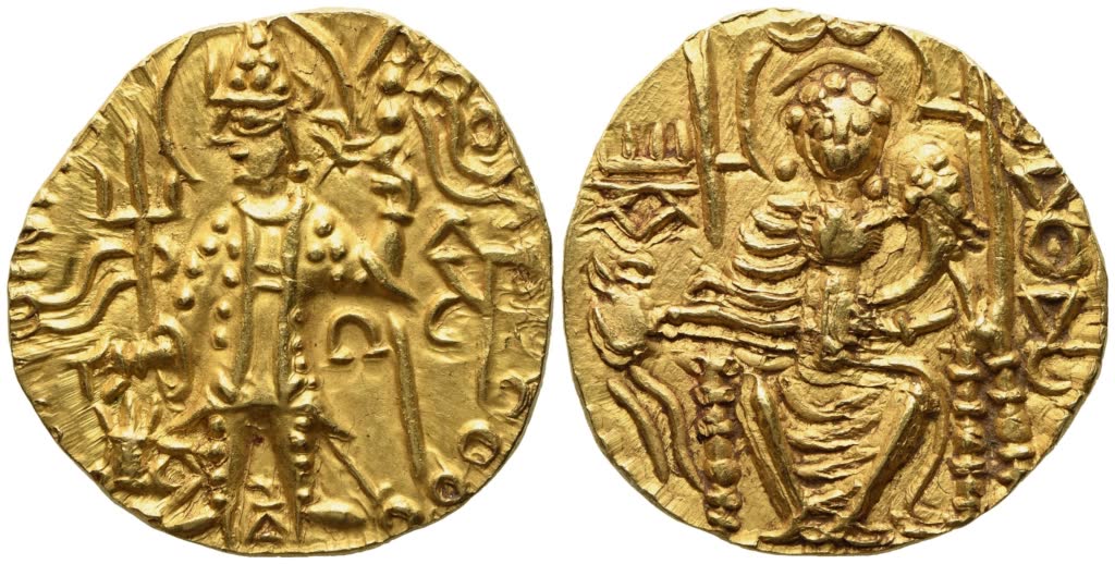 Lot 632 | India, Kushan Empire, Vasudeva II or III (c. 275-365), Dinar; AV (7,90 g; 21 mm)