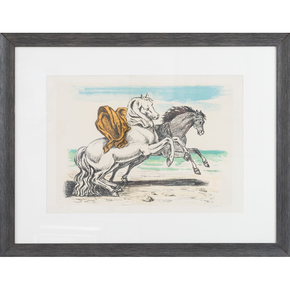 GIORGIO DE CHIRICO, Cavalli, Litografia a colori