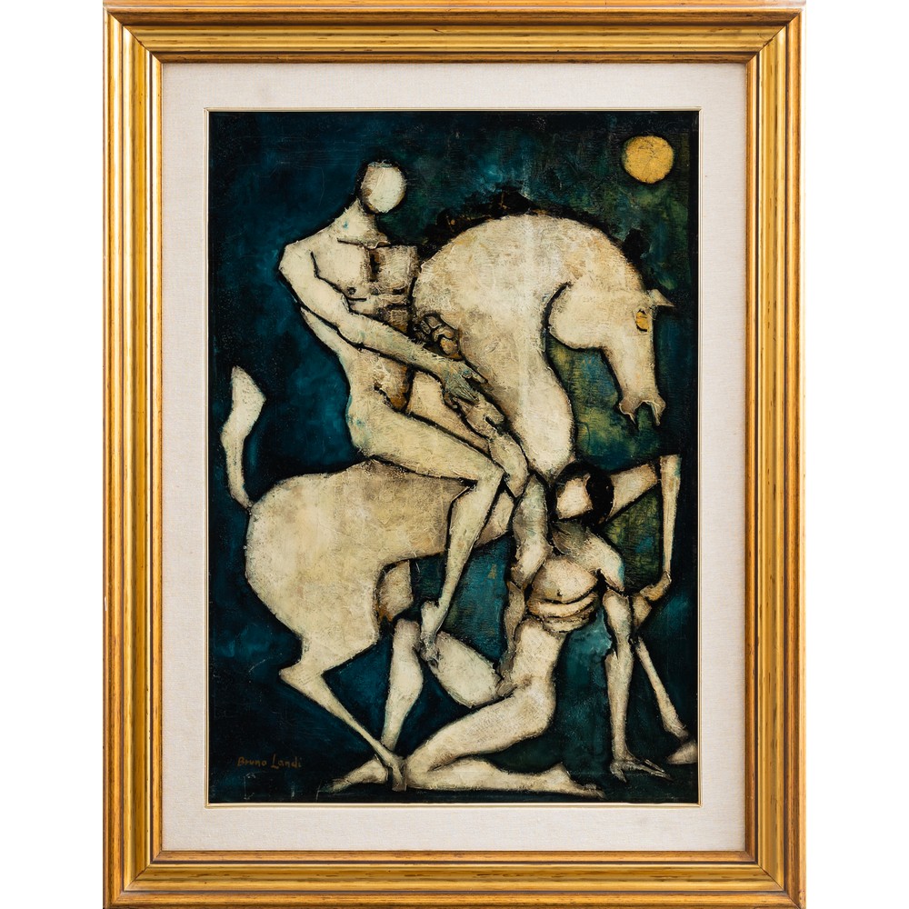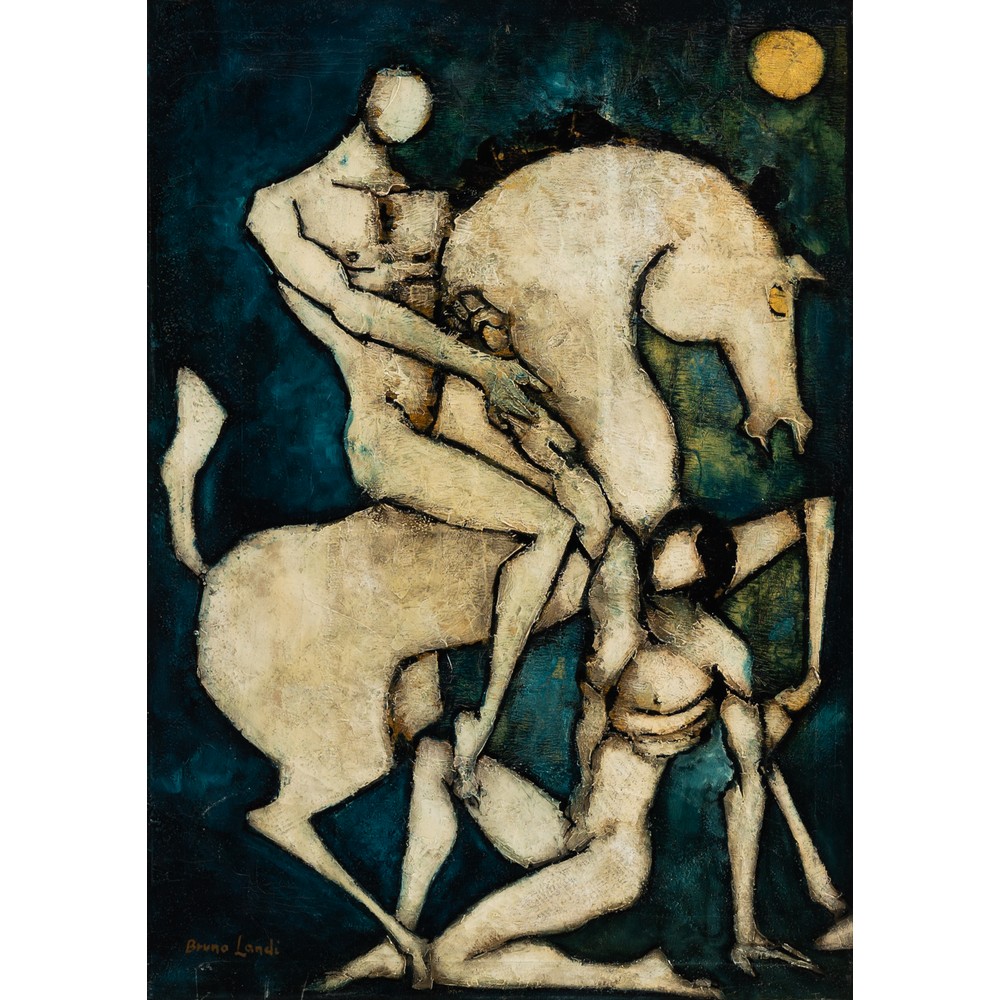BRUNO LANDI, Figure e cavallo, Olio su tela