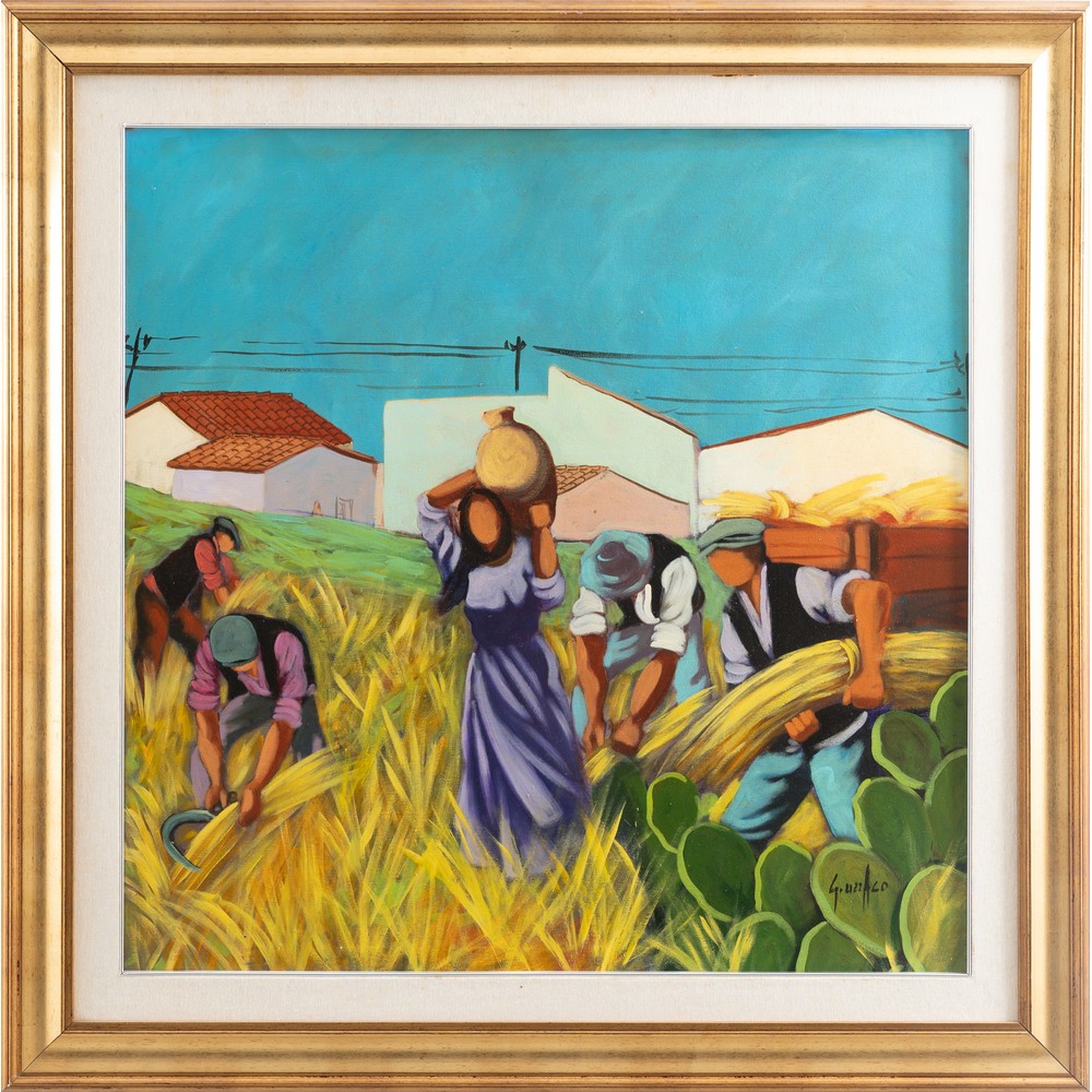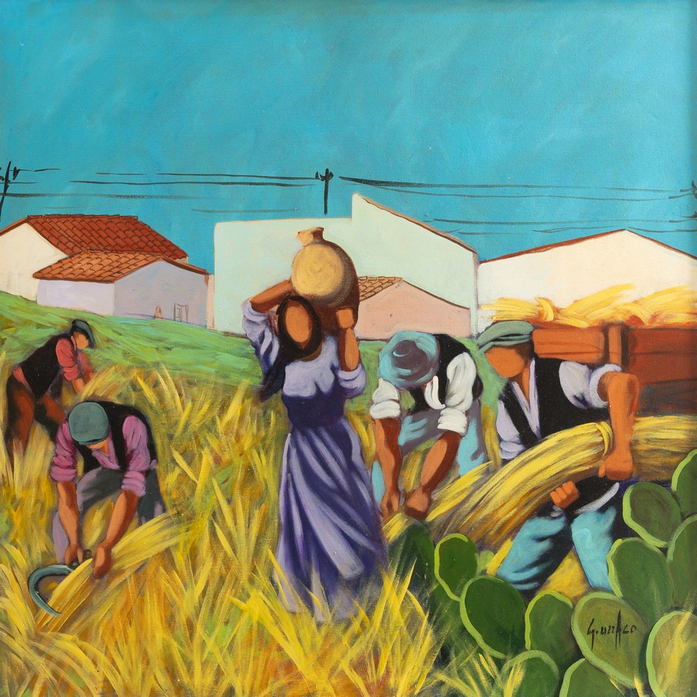 GIUSEPPE UZZACO, Contadini, Olio su tela