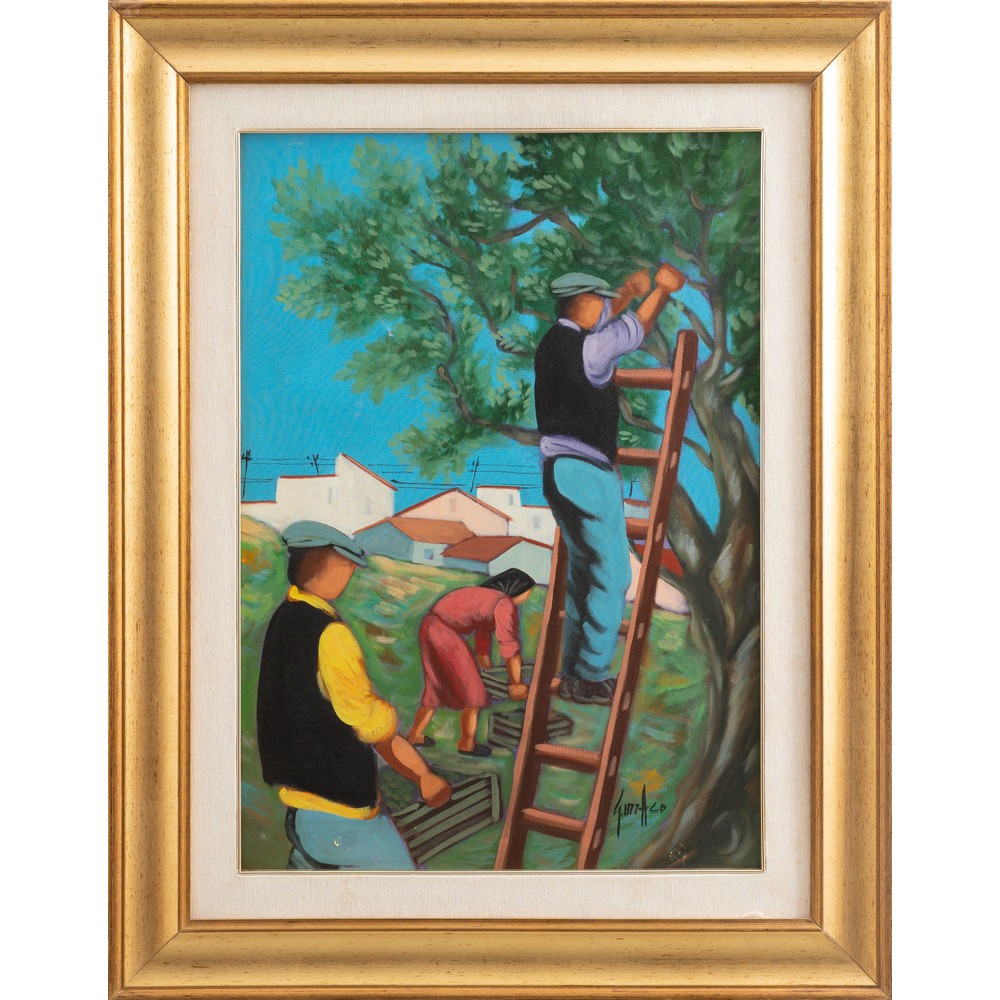 GIUSEPPE UZZACO, La raccolta delle olive, Olio su tela