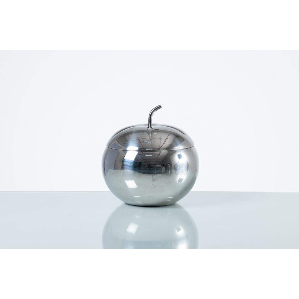 Mela portaghiaccio in metallo cromato, coperchio con picciolo.