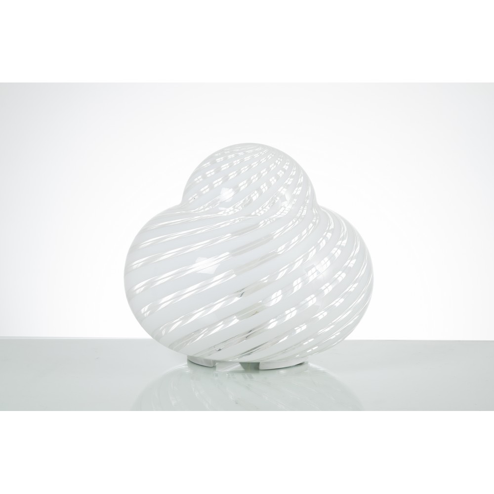 Lampada da tavolo ad una luce modello “Mushroom”, in vetro lattimo decorato con rigature a spirale. Impianto elettrico originale.