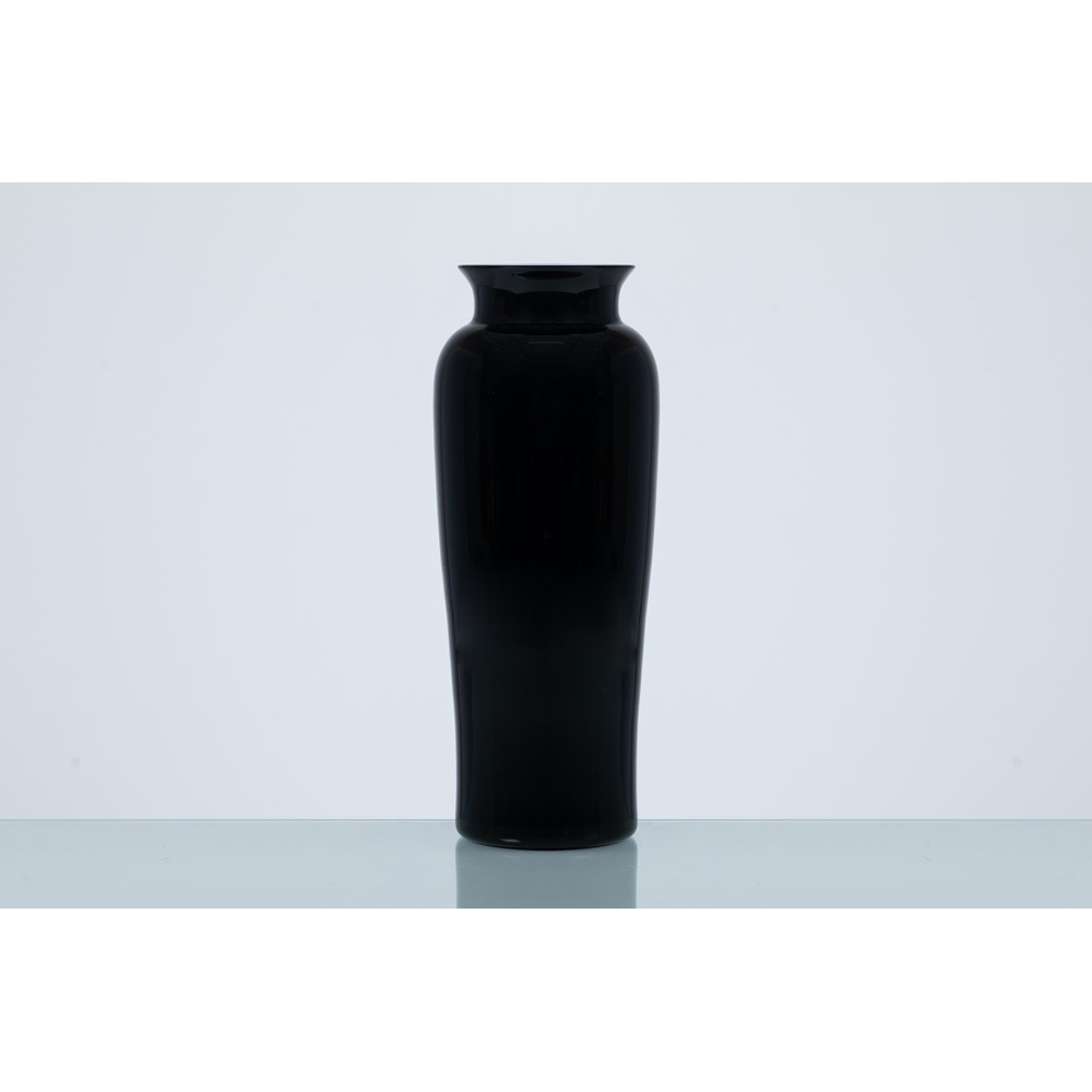 Vaso in vetro nero con corpo cilindrico, basso collo lievemente a vaso con bocca estroflessa piana. Firma a graffio.