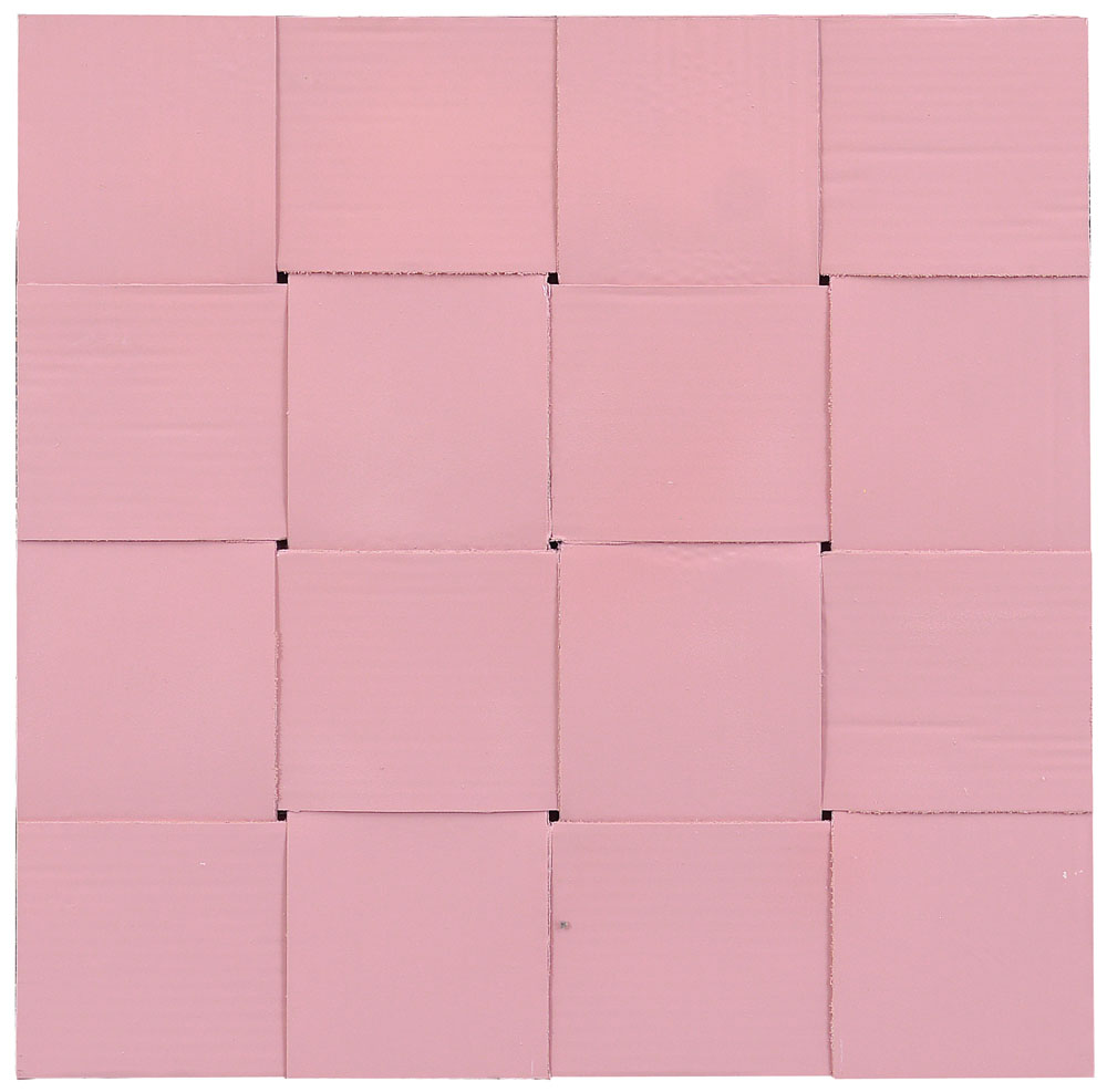 smalto acrilico su cartone ondulato montato su telaio cm. 47x47; firma, titolo, anno e tecnica al retro, dichiarazione d'autenticità e archivio dell'artista su foto, entro teca in plexiglass.