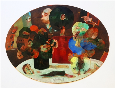 POSSENTI ANTONIO Lucca 1933 - 2016 "Senza titolo" Olio su tavola cm 42x30 (misura dell’ ovale) del 2000, firmato sul fronte in basso al centro e sul retro. Autentica ed archiviazione su foto a cura dell'archivio galleria Fantasio & Joe di Lucca. Certificato di garanzia di altra casa d'aste.