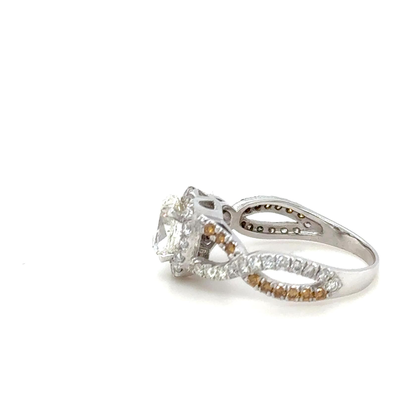 ANELLO IN ORO BIANCO 14k - 3.05 GR CON DIAMANTI: PEITRA CENTRALE BRILLANTE COLORE G PUREZZA VS1 1-1.04 CT + BRILLANTI LATERALI F-FANCY YELLOW VVS-VS 58-0.68 CT TAGLIA: 7 CERTIFICATO WGI - DH-R315 - DH-R315