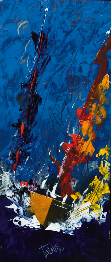 acrilici su tavola cm. 70x30, firma in basso al centro, titolo, firma e anno al retro, dichiarazione d'autenticità dell'artista su foto.