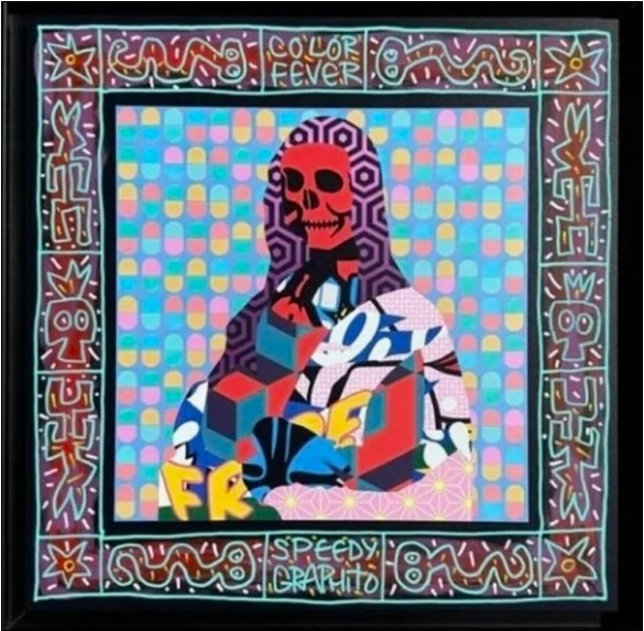 SPEEDY GRAPHITO - OLIVIER RIZZO Francia 1961 "Monna Lisa" Scatola americana su Alu Dibond cm 50x50, pezzo unico. Opera firmata.