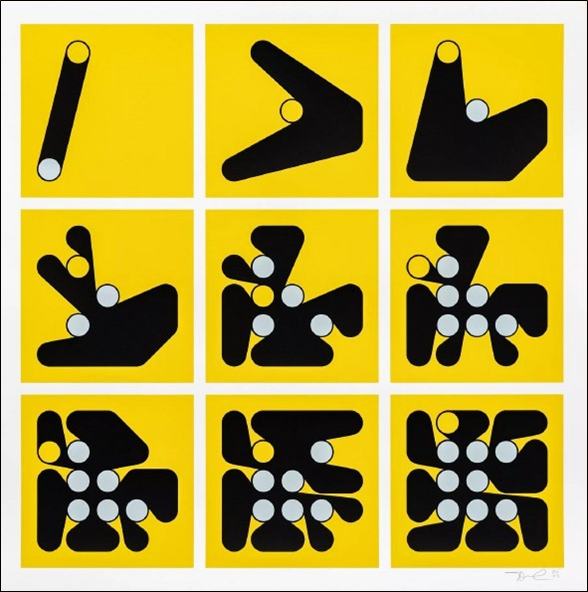 CHERNIAK DMITRI Canada 1988 "Ringers #962: The LACMA Iterations" Serigrafia a 3 colori impressi in 7 strati, su carta Somerset Tub Radiant bianca 410gr, cm 50x50. Edizione di 726, certificato di garanzia.