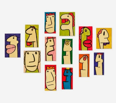 NOIR THIERRY Lione 1958 "Senza titolo" Acrilici e feltro su pannello, in 13 elementi di misure variabili da cm 3,6x7 a cm 5,9x8,6. Provenienza collezione privata in Atene.