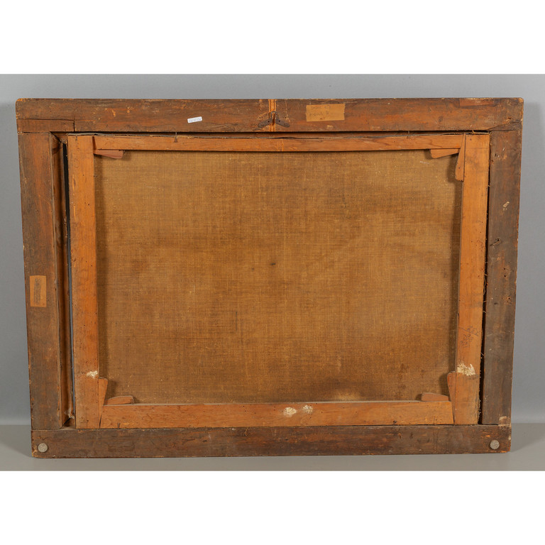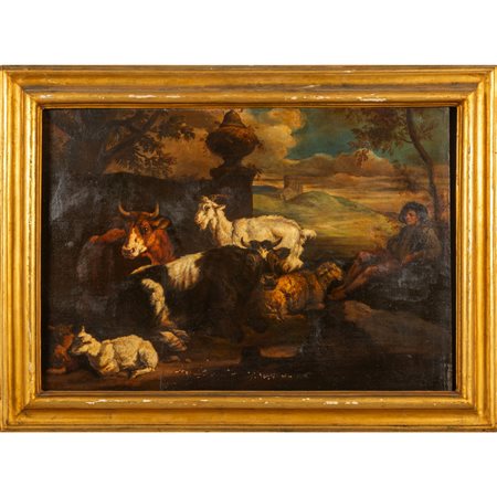 'Paesaggio con pastore ed armenti' olio cornice coeva a sagoma romana