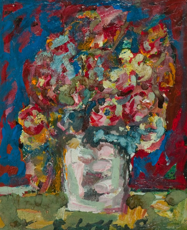 Silvio Loffredo (Parigi 1920) FIORI, 2002 Olio su cartone telato, cm. 49,5x39,5 Firmato in basso al centro. Sul verso: firma e data. Autentica dell'Artista su foto.