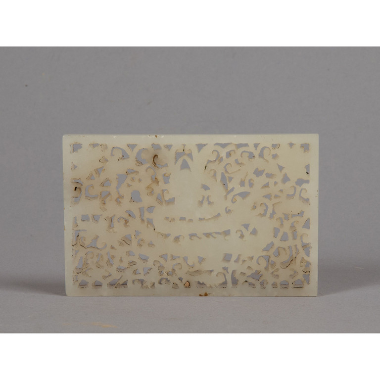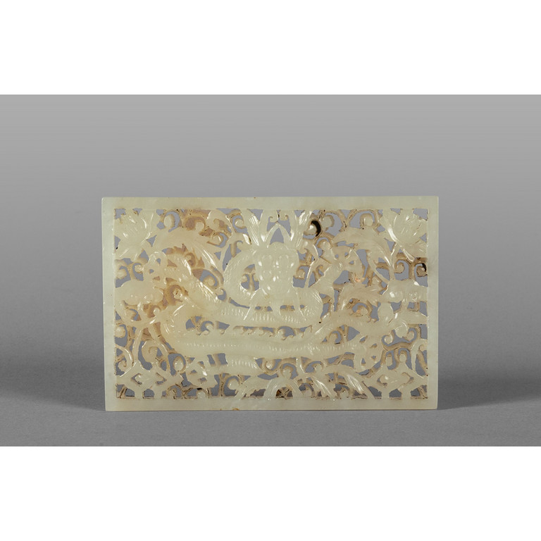 Placca in giada bianca finemente intagliata a motivo di drago Cina sec.XIX