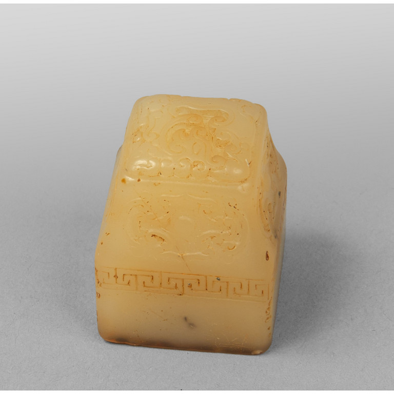 Piccolo sigillo in saponaria intagliata a motivi arcaici Cina