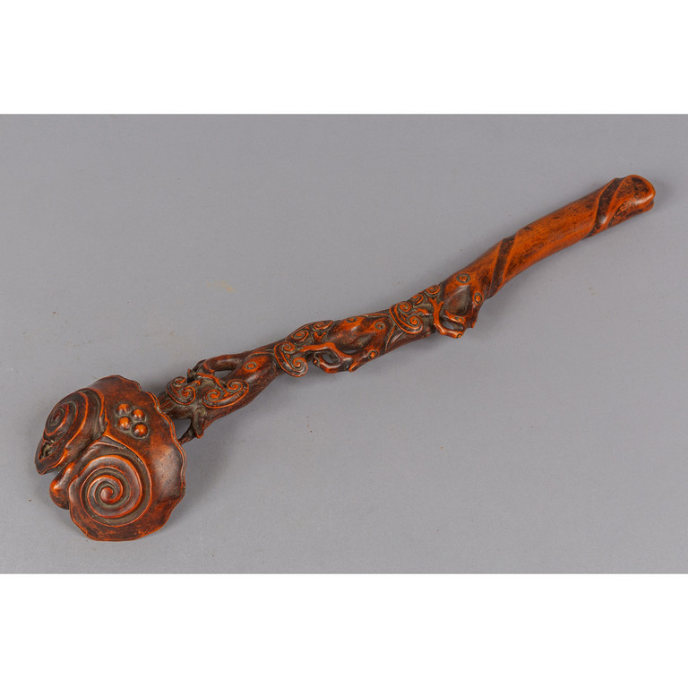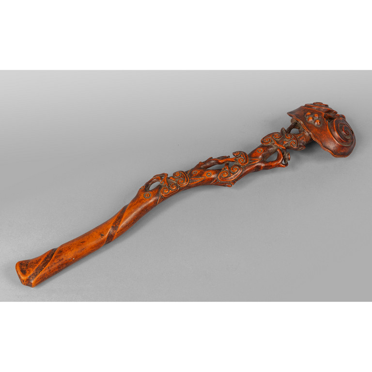 Scettro in legno intagliato e forma di ramo con funghi Cina sec.XIX