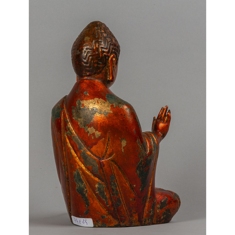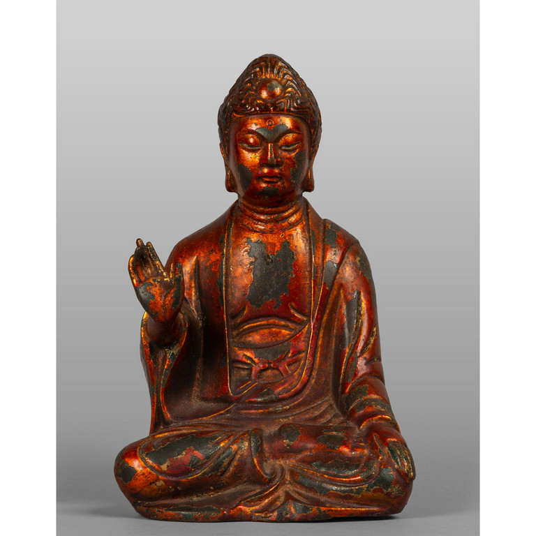 Budda scultura in bronzo con tracce di lacca rossa epoca Ming Cina sec.XVII